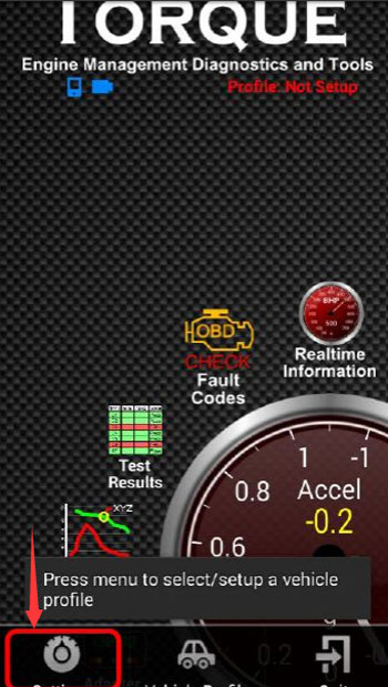 Dann Torque-Software ausführen und klicken Sie auf Menü.