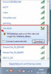 Step 8: Open the WIFI and find the VAS-6154 wifi name and connect it.